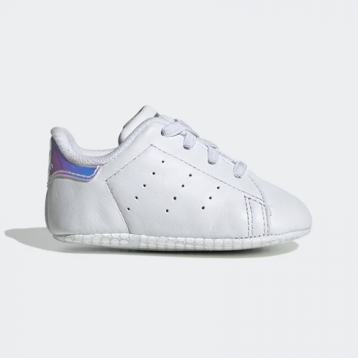 Il classico stile Stan Smith in versione ridotta per piedini alla moda. Queste scarpe sono pensate per i più piccoli e presentano una tomaia in pelle morbida e flessibile che segue ogni loro movimento. La suola in tessuto antiscivolo li aiuta a non perdere la stabilità e i lacci elasticizzati consentono di mettere e togliere le scarpine facilmente. I dettagli iridescenti completano il tutto con un tocco brillante.